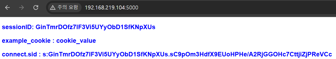 sameSite: "strict"일 때, 웹 페이지 내의 js 코드에서 /api/session 요청으로 session 데이터를 받을 경우 아래와 같이 잘 나옴